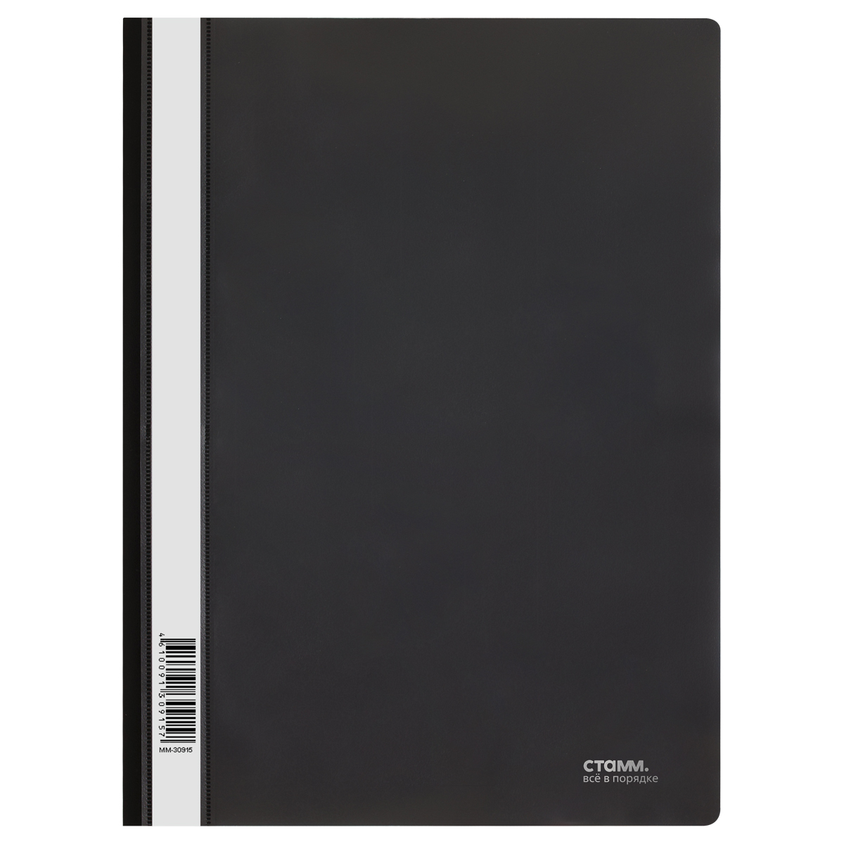 Папка-скоросшиватель пластик. СТАММ А4, 180мкм, черная с прозр. верхом, ММ-30915, 356769