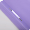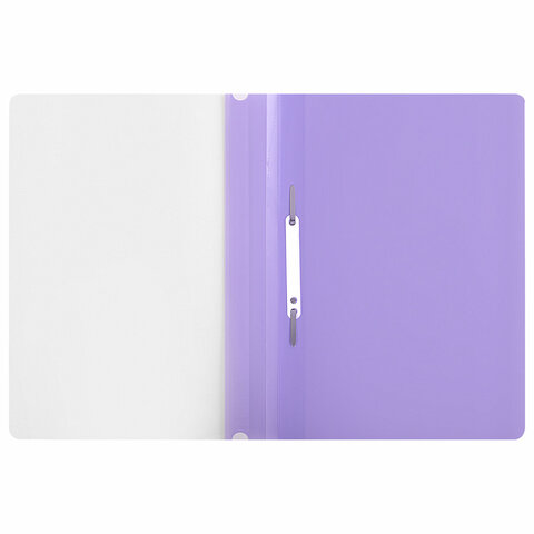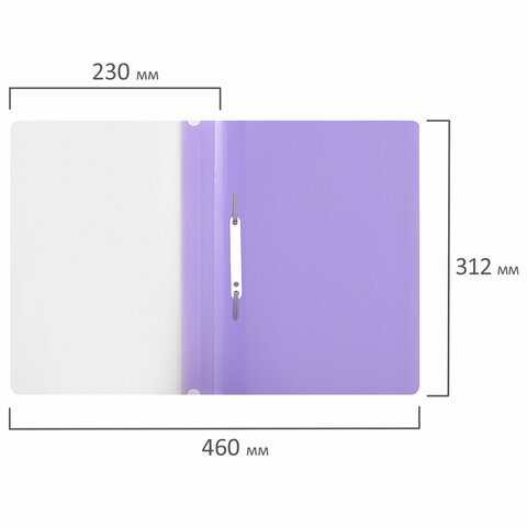 Папка-скоросшиватель формата А4 из высококачественного пластика с текстурой поверхности "диагональ", на которой не видно отпечатков пальцев и мелких царапин. Цвет папки – ассорти: голубой, мятный, розовый, фиолетовый. Механизм – механический скоросшиватель. Папка вмещает до 130 бумажных листов. Размер – 312х230 мм, толщина верхнего листа – 0,12 мм, толщина – 0,18 мм.