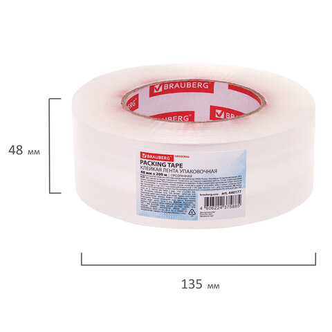Клейкая лента упаковочная (скотч) 48 мм х 200 м, прозрачная, толщина 45 микрон, BRAUBERG ORIGINAL, 440177