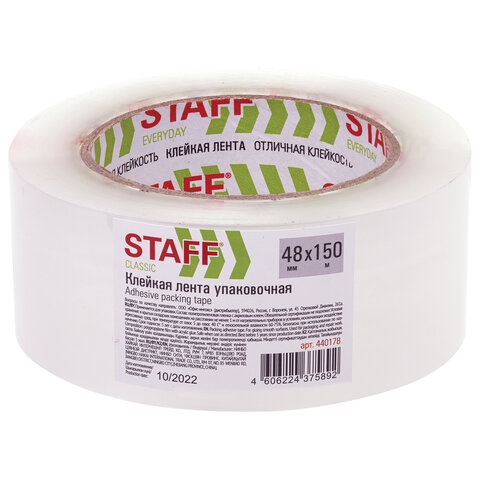Клейкая лента 48 мм х 150 м упаковочная, прозрачная, толщина 40 микрон, STAFF CLASSIC, 440178