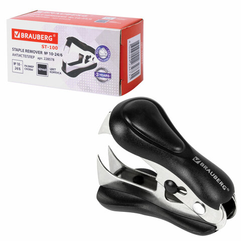 Антистеплер для скоб № 10 и № 24/6, BRAUBERG "ST-100", с фиксатором, черный, 228578
