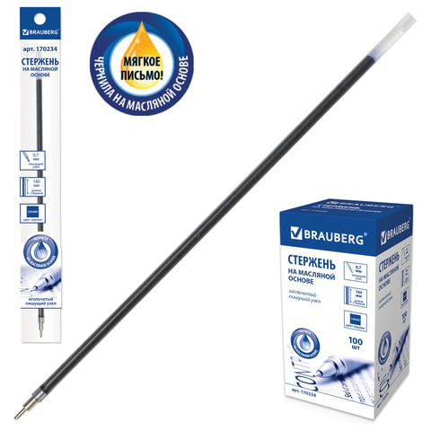 Стержень шариковый масляный BRAUBERG, 140 мм, СИНИЙ, игольчатый узел 0,7 мм, линия письма 0,35 мм, 170234