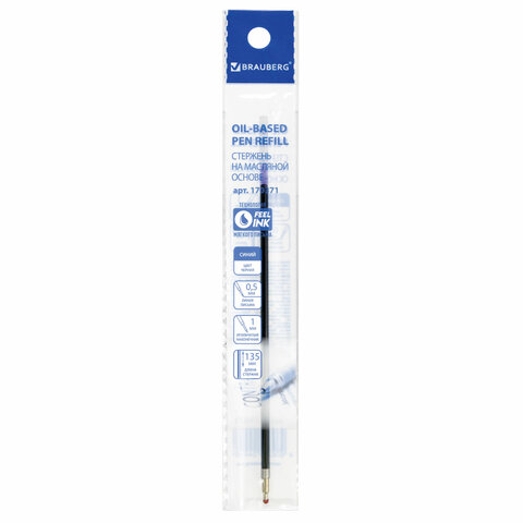 Стержень шариковый масляный BRAUBERG 135 мм, СИНИЙ, чернила DOCUMENTAL (Германия), узел 1,0 мм, линия письма 0,5 мм, 170371