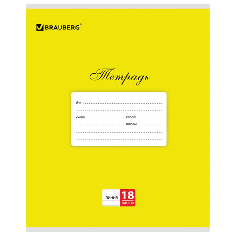 Тетрадь 18 л. BRAUBERG КЛАССИКА, линия, обложка картон, ЖЕЛТАЯ, 104732