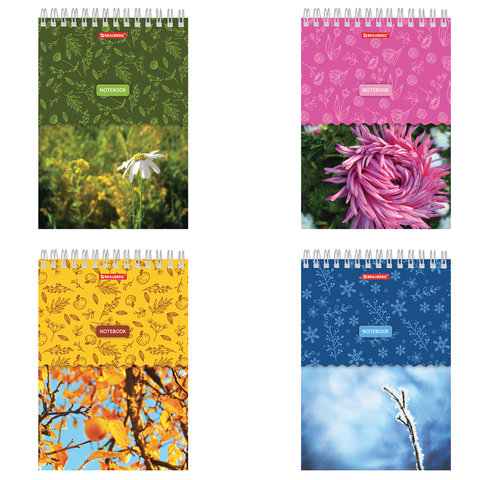Блокнот А5 (146х205 мм), 60 л., гребень, картон, жесткая подложка, клетка, BRAUBERG, "Четыре сезона", 129811