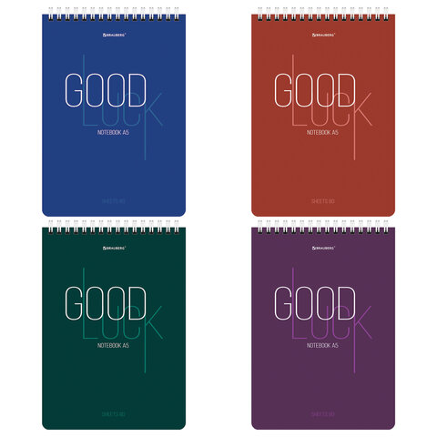 Блокнот А5 (146х206 мм), 80 л., гребень, картон, жесткая подложка, клетка, BRAUBERG, "Good Luck", 114384