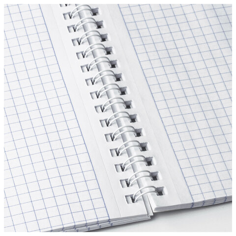 Блокнот формата А5 на евроспирали содержит 80 листов с линовкой в клетку, что позволяет зафиксировать большой объем нужной информации и дает возможность аккуратно заполнить цифровые значения, а также нанести чертежные зарисовки. Гребень расположен сверху. Обложка выполнена из мелованного картона плотностью 190 г/м2. Внутренний блок состоит из белой офсетной бумаги плотностью 60 г/м2.