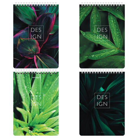 Блокнот А5 (146х206 мм), 80 л., гребень, картон, жесткая подложка, клетка, BRAUBERG, "Растения", 114388