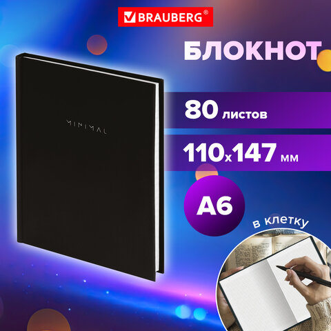 Блокнот МАЛЫЙ ФОРМАТ 110х147 мм, А6, 80 л., твердый, клетка, BRAUBERG "Minimal", черный, 116444