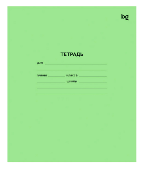 Тетрадь BG с зеленой обложкой состоит из 18 листов и предназначена для дошкольников и учащихся начальных и средних классов. Изготовлена в соответствии с ГОСТ Р 54543-2011.