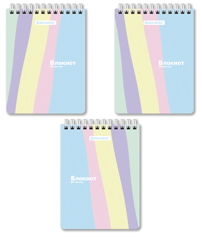 Блокнот МАЛЫЙ ФОРМАТ А6 108х145 мм, 60 л., гребень, картон, клетка, кросс-серия "PASTEL", BRAUBERG, 117033