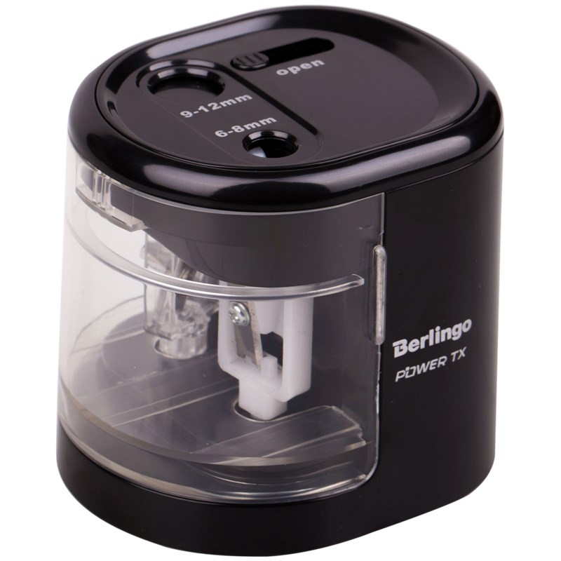 Настольная точилка для чернографитовых и цветных карандашей. Прочный пластиковый корпус. Съёмный контейнер для стружки. Работает на 4 батарейках AA (поставляется без батареек). Может использоваться для ручной заточки.