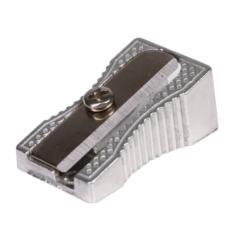 Эргономичный корпус прямоугольной формы выполнен из металла. Ребристая поверхность корпуса позволяет удобно держать точилку в руке. Острое стальное лезвие обеспечивает быструю и легкую заточку. Размер - 14х10х20 мм.