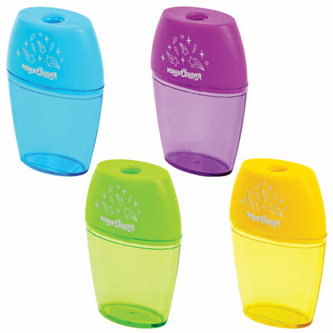 Точилка ЮНЛАНДИЯ "Радуга", с контейнером, овальная, пластиковая, корпус ассорти, 228765