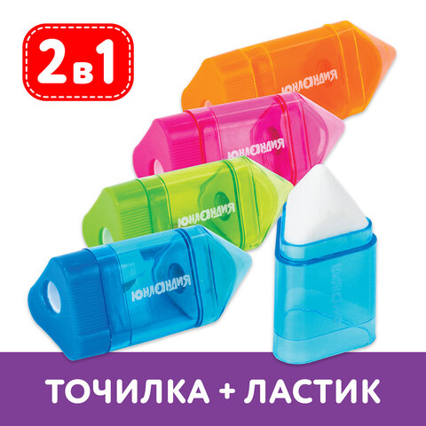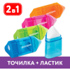 Точилка ЮНЛАНДИЯ "Карандашик", со стирательной резинкой, с контейнером, пластиковая, ассорти, 228440
