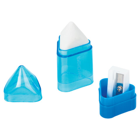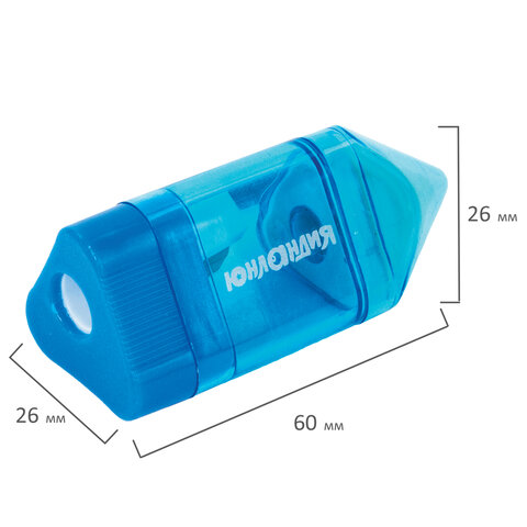 Корпус выполнен из пластика. Острое лезвие обеспечивает высококачественную и точную заточку. Карандаш до 8 мм затачивается легко и аккуратно, а опилки остаются в специальном контейнере. Имеется ластик. Компактные размеры (60х26х26 мм) позволят поместить точилку в пенал, а благодаря интересной форме она не затеряется на парте или столе среди других принадлежностей.