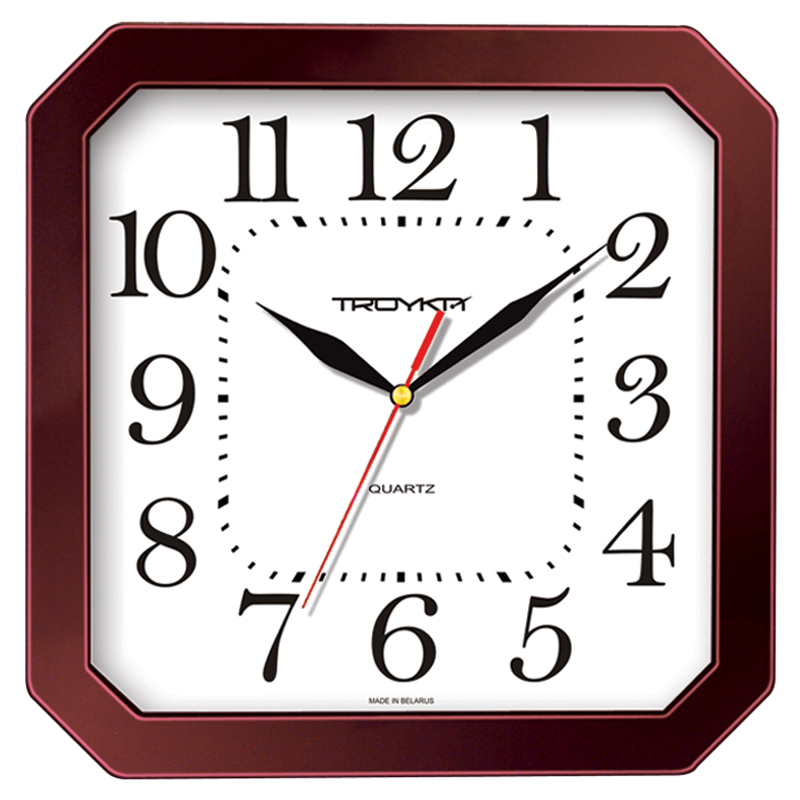Часы настенные ход плавный, Troyka 31331316, квадратные, 29*29*3,5, бордовая рамка 290825