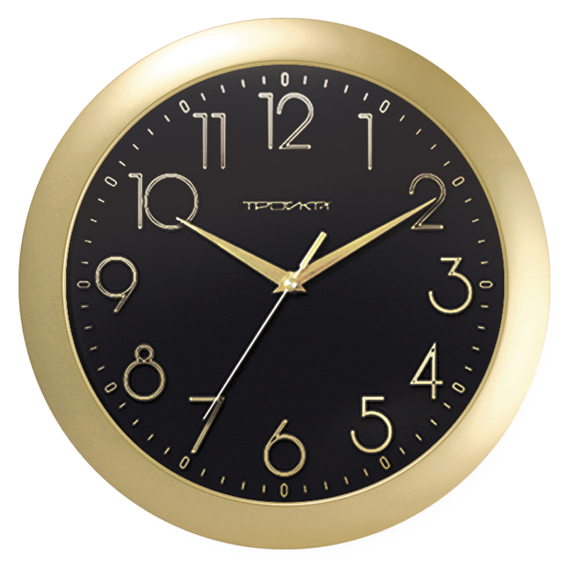 Часы настенные ход плавный, Troyka 11171180, круглые, 29*29*3,5, золотистая рамка 290829