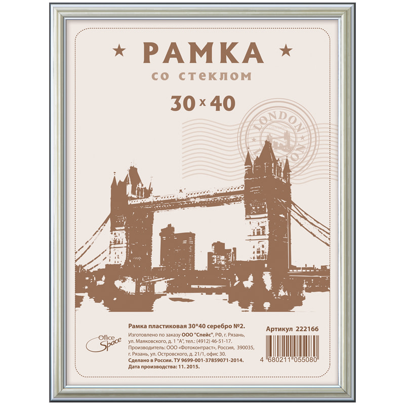Рамка пластиковая 30*40см, OfficeSpace, №2, серебро, 222166