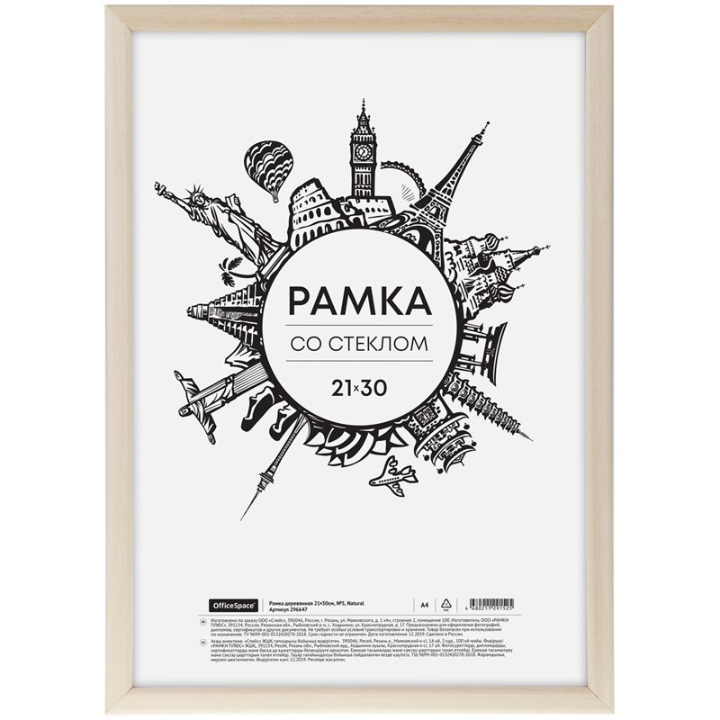 Рамка деревянная 21*30см, OfficeSpace, №5, Natural 296647