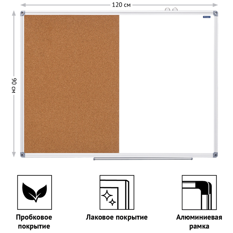 Доска магнитно-маркерная/пробковая OfficeSpace, 90*120см, алюминиевая рамка 307417
