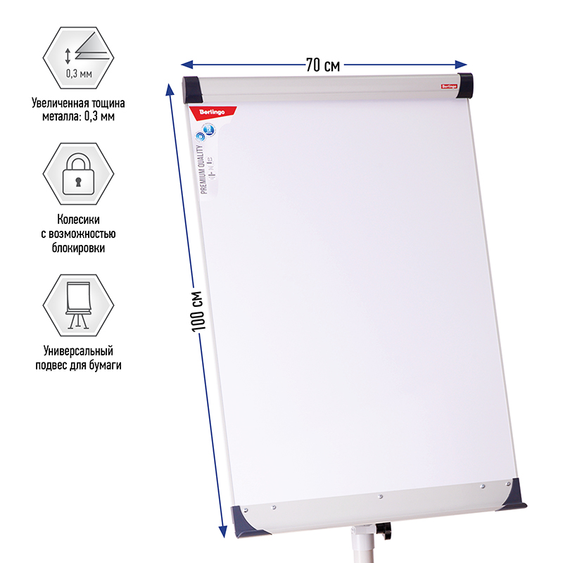 Флипчарт передвижной Berlingo "Premium", 70*100см, регулировка по высоте, полочка 199151