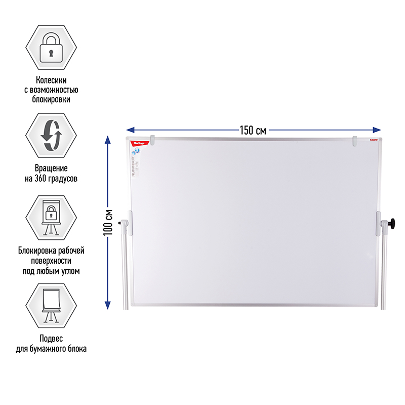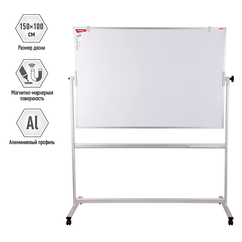 Доска магнитно-маркерная Berlingo "Premium", 100*150см, двусторонняя, поворотная, мобильная 207647