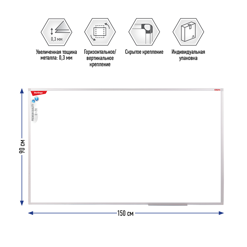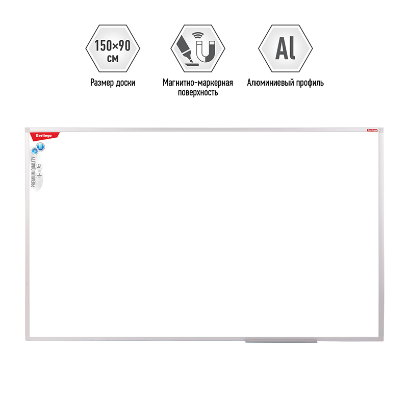 Доска магнитно-маркерная Berlingo "Premium", 90*150см, алюминиевая рамка, полочка 199146