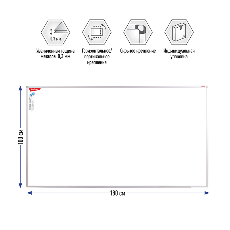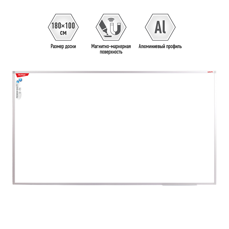Доска магнитно-маркерная Berlingo "Premium", 100*180см, алюминиевая рамка, полочка 243037