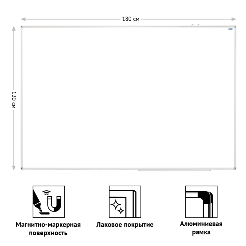 Магнитно-маркерная доска OfficeSpace идеально подойдёт для проведения тренингов, совещаний и презентаций. Размер: 120*180 см. Белое лаковое покрытие предназначено для письма специальными маркерами. Металлическая поверхность позволяет размещать объявления при помощи магнитов. Алюминиевая рамка с укреплёнными пластиковыми уголками гарантирует прочность конструкции и длительный срок службы. Предусмотрена возможность как горизонтального, так и вертикального монтажа доски на поверхности. Комплектация: полочка для аксессуаров, крепежные элементы, инструкция. • Тип доски: односторонняя; • Материал рабочей поверхности: металл; • Размещение: настенное; • Размер: 120*180 см; • Цвет рабочей поверхности: белый.