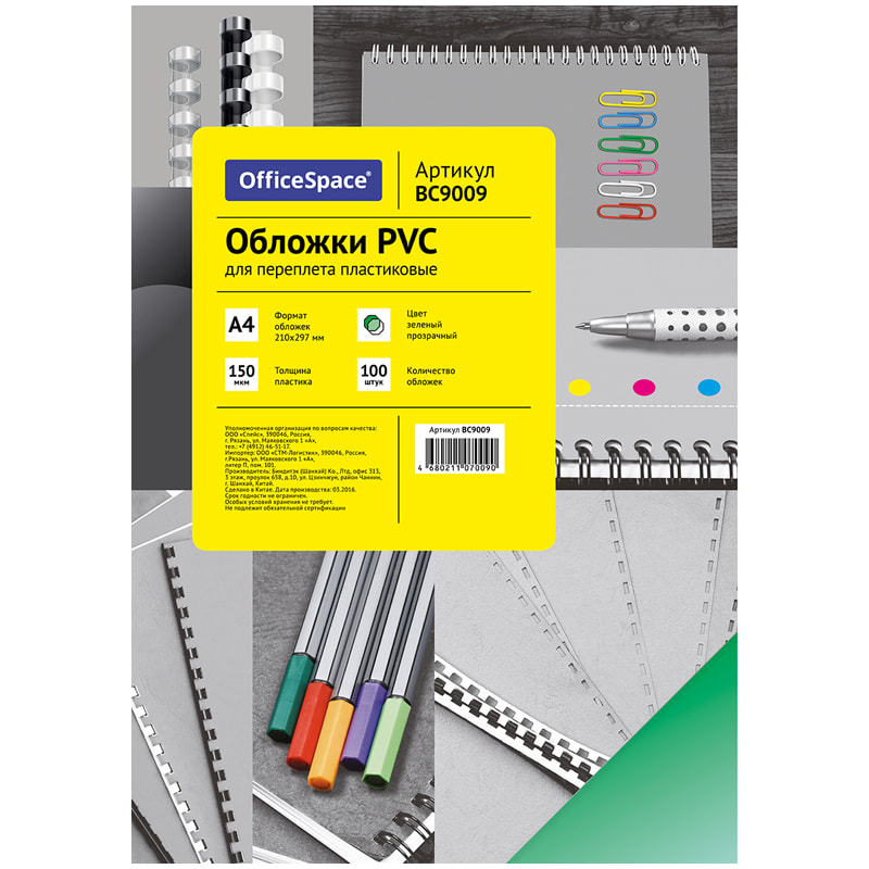Обложка для переплета предназначена для оформления документов. Выполнена из прозрачного пластика зелёного цвета с глянцевой фактурой. Идеально подходит как для переплета на пластиковую, так и на металлическую пружины.