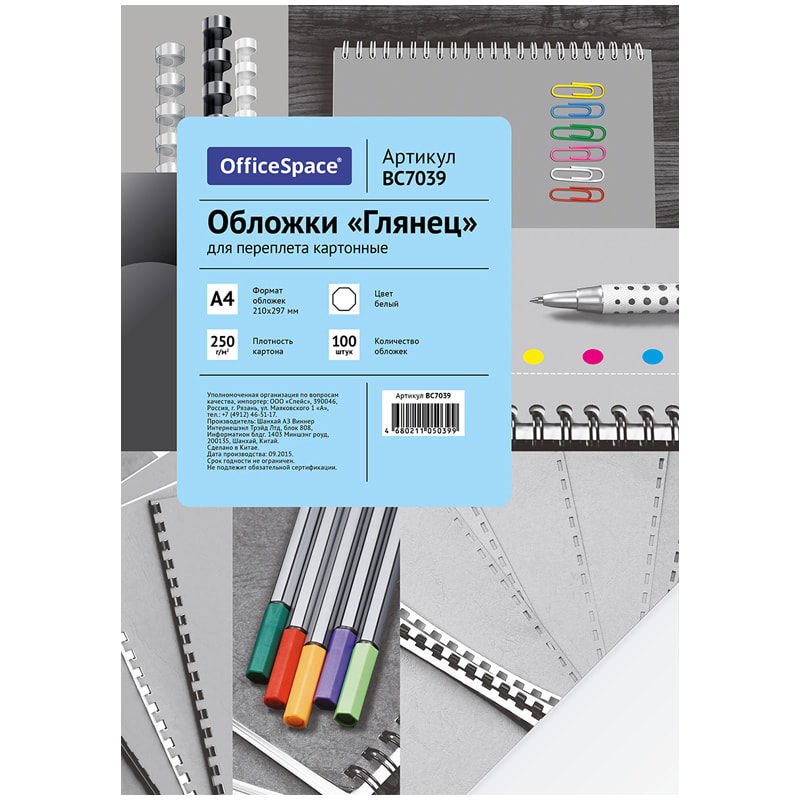 Обложка А4 OfficeSpace BC7039 "Глянец" 250г/кв.м, белый картон, 100л. (222479)