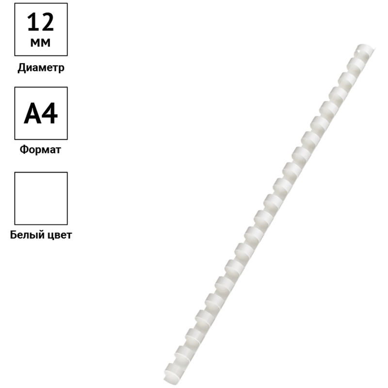 Пружины пластиковые для переплета, КОМПЛЕКТ 100 шт., 12 мм (для сшивания 56-80 л.), белые,<br>OfficeSpace, 100шт. 222446