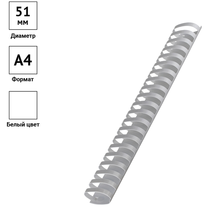 Пружины пластиковые для переплета, КОМПЛЕКТ 50 шт., 51 мм (для сшивания 411-450 л.), белые, OfficeSpace, 100шт. 222476