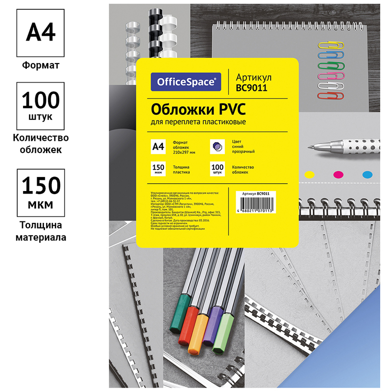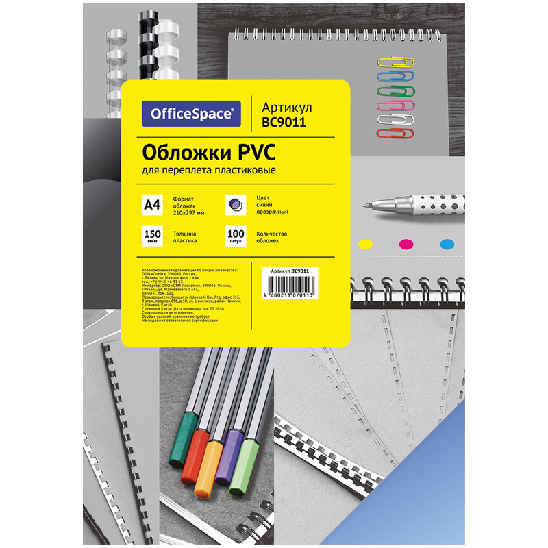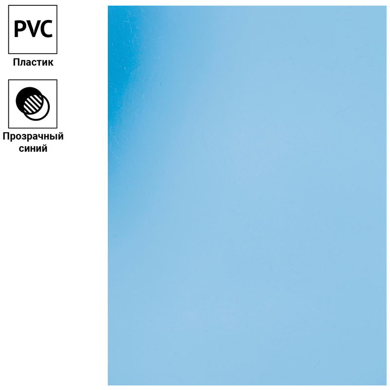 Обложка для переплета предназначена для оформления документов. Выполнена из прозрачного пластика синего цвета с глянцевой фактурой. Идеально подходит как для переплета на пластиковую, так и на металлическую пружины.