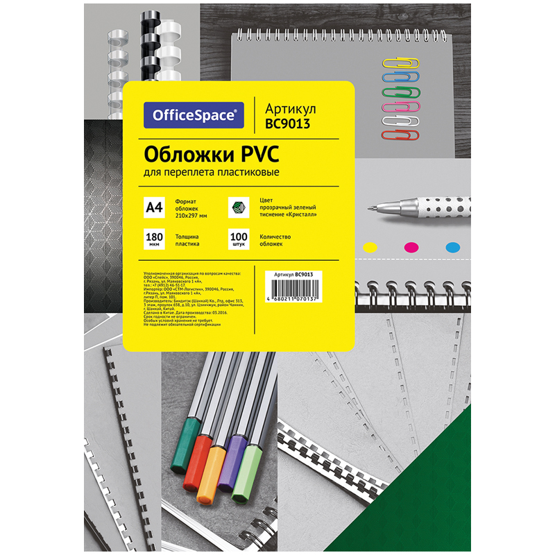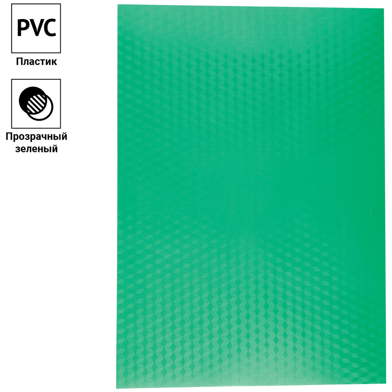 Обложка для переплета предназначена для оформления документов. Выполнена из прозрачного пластика зеленого цвета с фактурным тиснением "Кристалл". Идеально подходит как для переплета на пластиковую, так и на металлическую пружины.