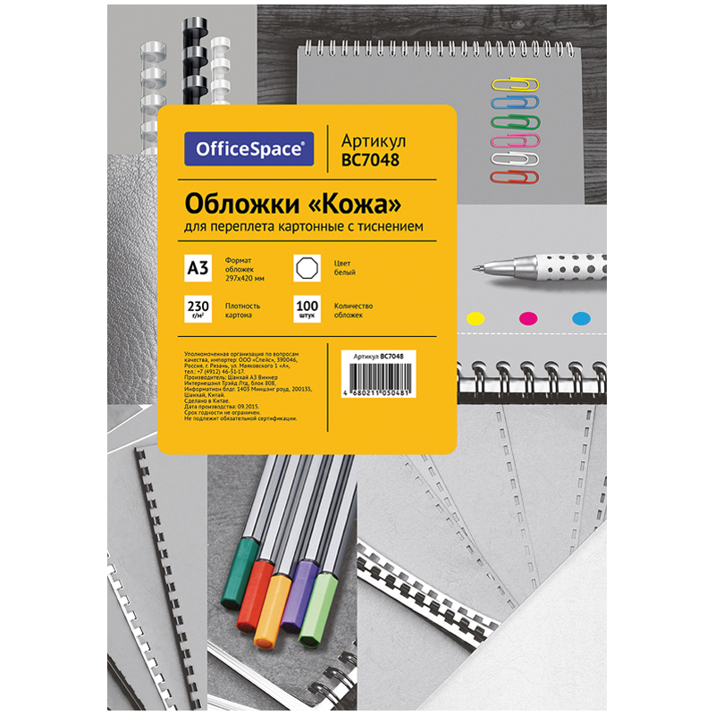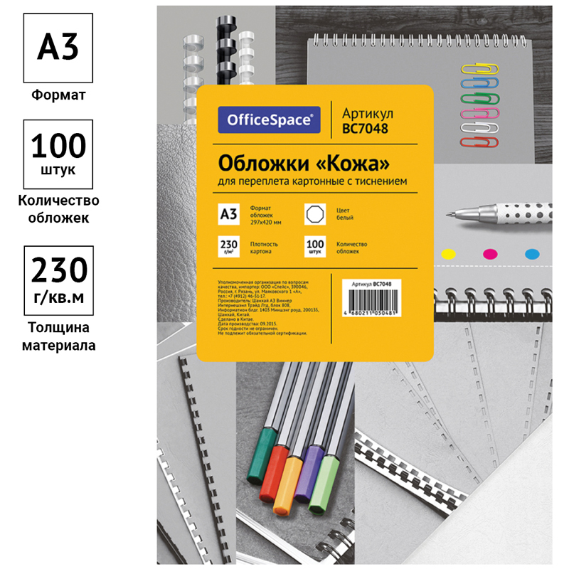 Обложка А3 OfficeSpace "Кожа" 230г/кв.м, белый картон, 100л. 222488