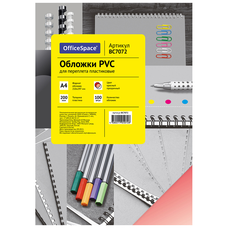Обложка для переплета предназначена для оформления документов. Выполнена из прозрачного пластика красного цвета с глянцевой фактурой. Идеально подходит как для переплета на пластиковую, так и на металлическую пружины.
