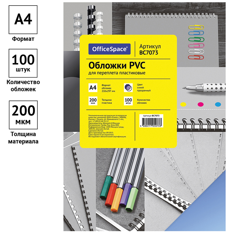 Обложка для переплета предназначена для оформления документов. Выполнена из прозрачного пластика синего цвета с глянцевой фактурой. Идеально подходит как для переплета на пластиковую, так и на металлическую пружины.