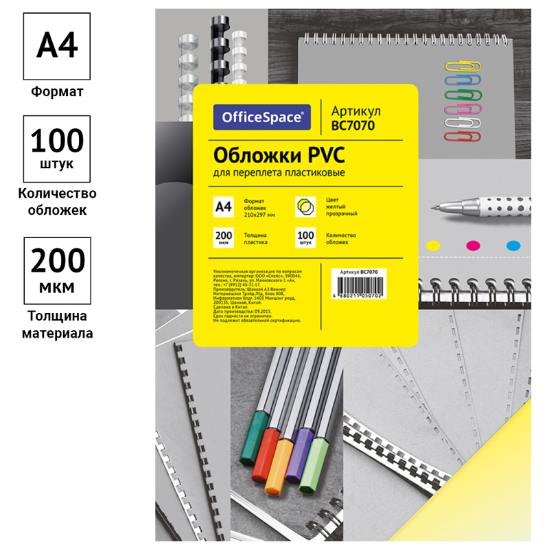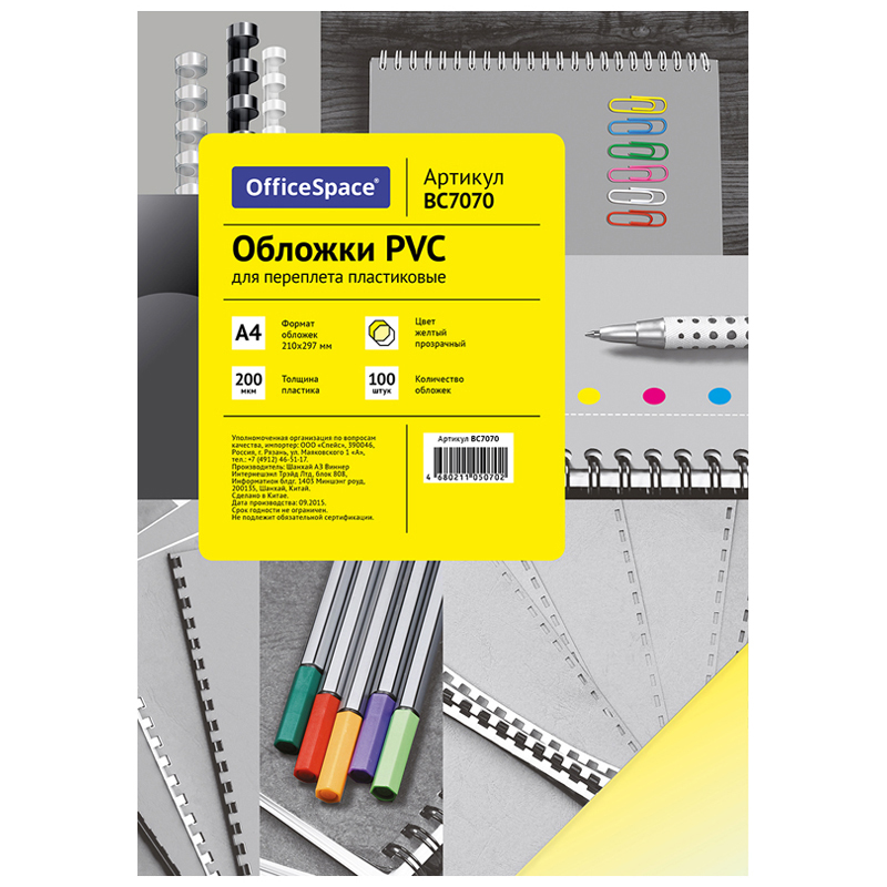 Обложка для переплета предназначена для оформления документов. Выполнена из прозрачного пластика жёлтого цвета с глянцевой фактурой. Идеально подходит как для переплета на пластиковую, так и на металлическую пружины.