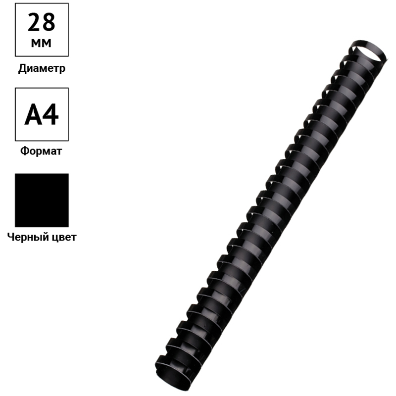 Пружины пластик D=28мм OfficeSpace, черный, 50шт. 222466