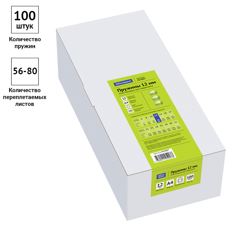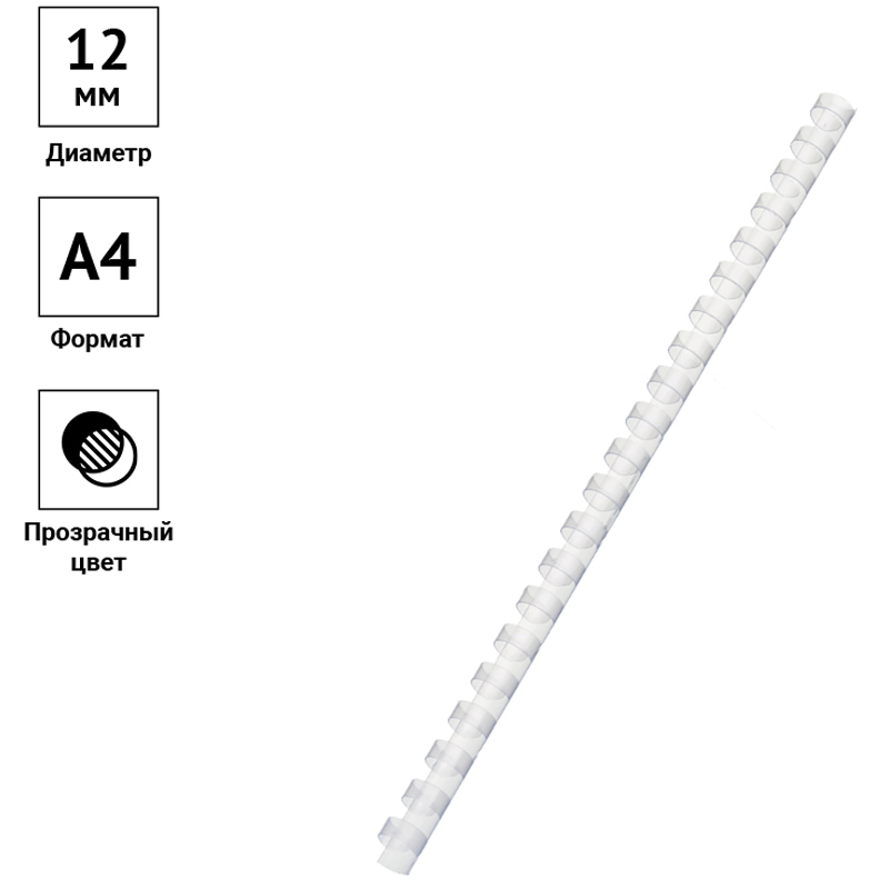 Пластиковые пружины OfficeSpace прозрачного цвета диаметром 12мм предназначены для переплета документов. Легко выдерживают многократное раскрытие при необходимости добавить или удалить листы из готовой брошюры. Рекомендуемый объем брошюры при использовании данного диаметра пружины: 56-80 листов.