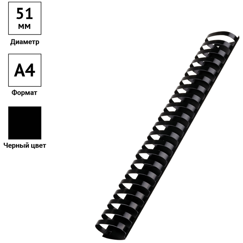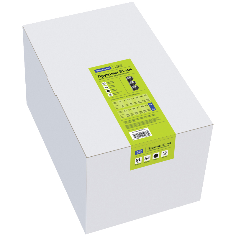 Пластиковые пружины OfficeSpace черного цвета диаметром 51мм предназначены для переплета документов. Легко выдерживают многократное раскрытие при необходимости добавить или удалить листы из готовой брошюры. Для надежной фиксации листов брошюры в пружине предусмотрены специальные блокирующие замки. Рекомендуемый объем брошюры при использовании данного диаметра пружины: 411-500 листов.