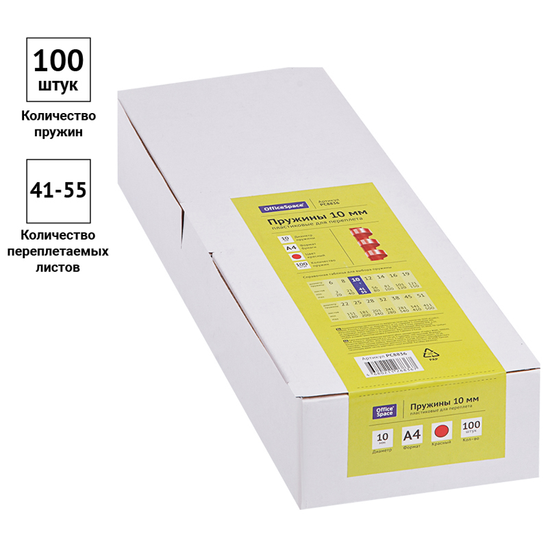 Пластиковые пружины OfficeSpace белого цвета диаметром 10мм предназначены для переплета документов. Легко выдерживают многократное раскрытие при необходимости добавить или удалить листы из готовой брошюры. Рекомендуемый объем брошюры при использовании данного диаметра пружины: 41-55 листов.