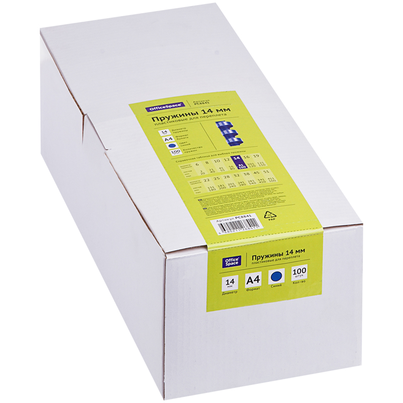 Пластиковые пружины OfficeSpace белого цвета диаметром 14мм предназначены для переплета документов. Легко выдерживают многократное раскрытие при необходимости добавить или удалить листы из готовой брошюры. Рекомендуемый объем брошюры при использовании данного диаметра пружины: 81-100 листов.