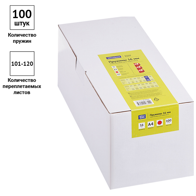 Пластиковые пружины OfficeSpace белого цвета диаметром 16мм предназначены для переплета документов. Легко выдерживают многократное раскрытие при необходимости добавить или удалить листы из готовой брошюры. Рекомендуемый объем брошюры при использовании данного диаметра пружины: 101-120 листов.